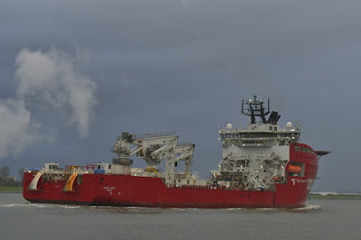 Na demontage en verwijdering van de door brand beschadigde J-Lay Tower vertrok de Noorse pijpenlegger SKANDI BUZIOS van de Wiltonhaven Schiedam naar Tomrefjord op 9 nov 2023.